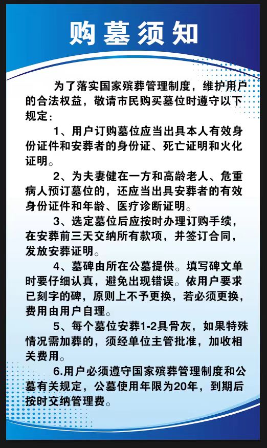 玉山息园购墓须知